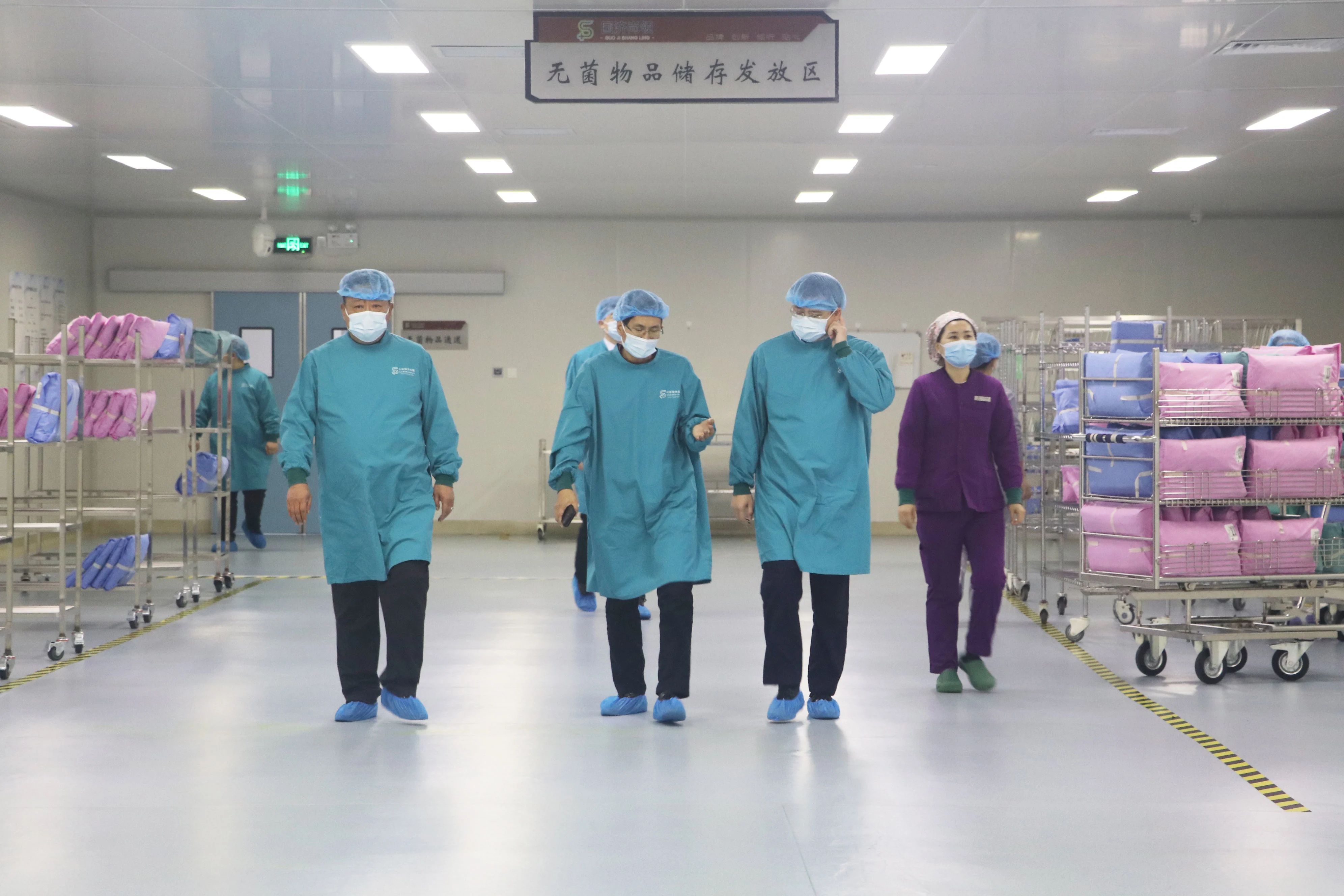 調研團先后參觀了智慧醫療消毒供應中心、智慧醫療洗護中心、在建項目智慧醫療軟器械綜合處理中心及其他延伸項目,在詳細了解洗消一體化產業發展運營情況后,對國濟尚領精細化、標準化管理、流程控制,產業運營給予高度評價和認可。