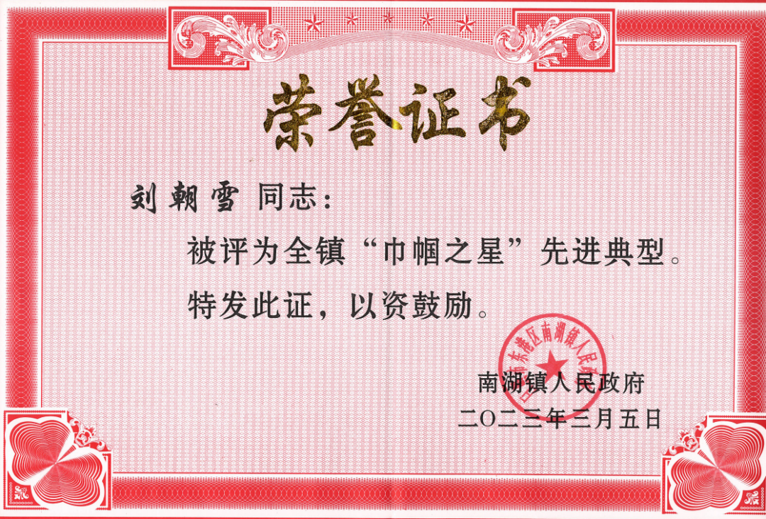 為全面貫徹落實習近平新時代中國特色社會主義思想和黨的二十大精神,選樹在新時代新征程上信念堅定、擔當作為的優秀女性。3月7日,南湖鎮人民政府為日照國濟尚領醫院管理服務有限公司消毒供應中心主任劉朝雪頒發“巾幗之星”榮譽證書。